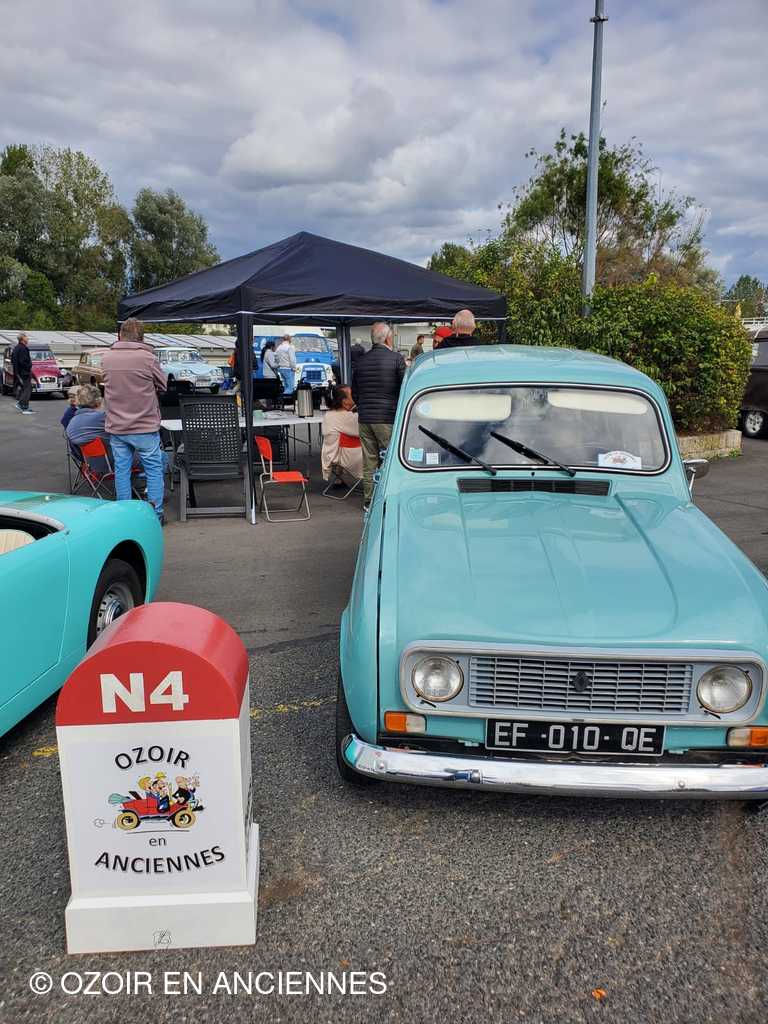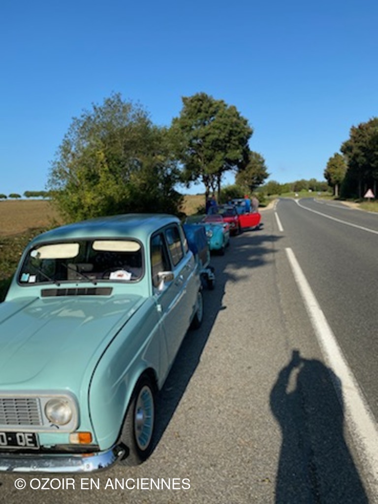La colonne d'ozoir en pause sur la route avec au 1er plan la 4 L turbo 2 des ouvreurs Cécilia et stéphane.